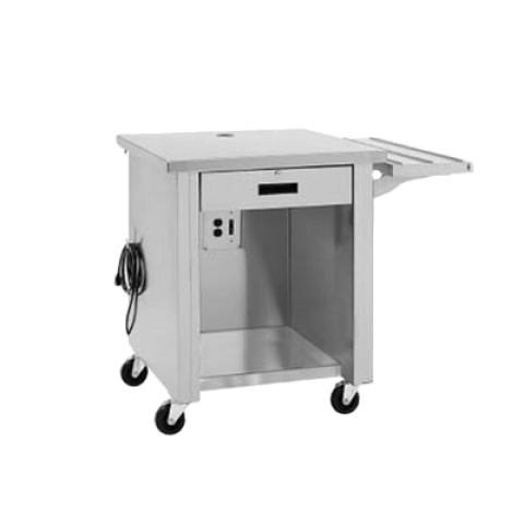 Shelleysteelâ„¢ Cashier Counter, 50" deep, stainless steel top, locking cash drawer, shelf, & base, 5" swivel casters, NSF (contact factory for price)