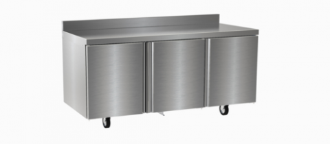 Refrigerated Worktop, three-section, 72"W, (3) doors, 4" backsplash