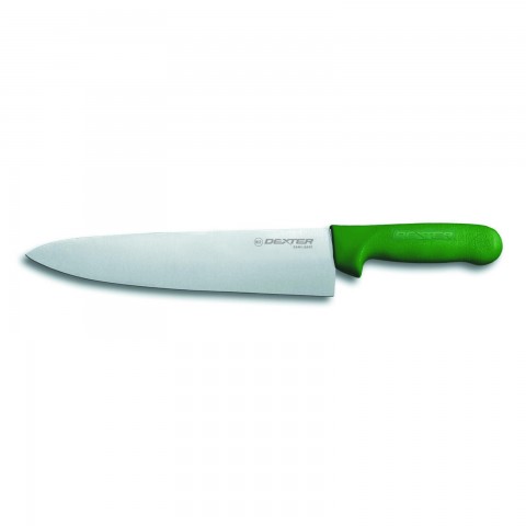 Sani-Safe® (S145-10G-PCP) Chef's/Cook's Knife, 10", stain-free, high-carbon steel, textured, polypropylene green handle, Perfect Cutlery Packaging, NSF Certified