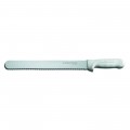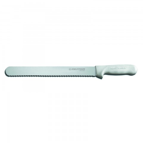 Sani-Safe® (S140-12SC-PCP) Roast Slicer, 12", scalloped edge, stain-free, high-carbon steel, textured, polypropylene white handle, Perfect Cutlery Packaging, NSF Certified, Made in USA