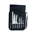 SofGrip™ (SGCC-7) Professional Cutlery Set, 7 piece, includes: 3-1/4" paring knife, 6" narrow boning knife, 6" scalloped utility knife, 9" scalloped offset slicer, 10" chef's/cook's knife, 12" duo-edge roast slicer, 12" diamond steel, cutlery case, stain-free, high-carbon steels, white handles