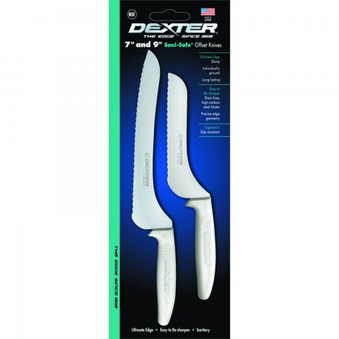 Sani-Safe® (S163-7SC/9SC) Bread Knife Set, 2 piece, includes: (1) 7" scalloped offset bread knife and (1) 9" scalloped offset bread knife, stain-free, high-carbon steel, textured, polypropylene white handle, NSF, Made in USA ( 2 per set)
