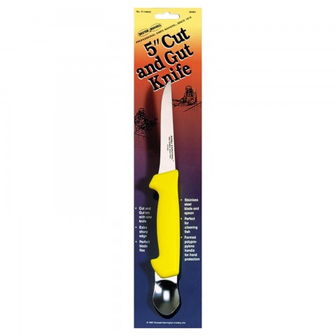 Basics® (P11893C) 5" Cut & Gut Knife in Skin Pak, stain-free, high-carbon steel, roe spoon, textured, yellow polypropylene handle