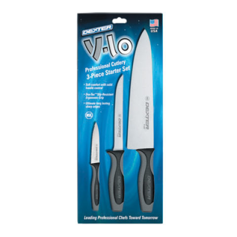 V-Lo® (V3CP) Cutlery Set, 3 piece, includes (1) each: 10" chef's/cook's knife, 6" boning knife, 3-1/2" paring knife, Clam Packaging, NSF Certified, Made in USA