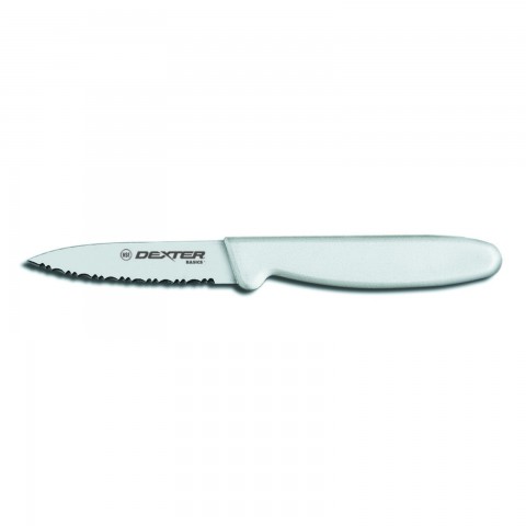 Basics® (P94846) Paring Knife, 3-1/8", scalloped, edge, tapered point, stain-free, high-carbon steel, polypropylene white handle, NSF Certified
