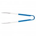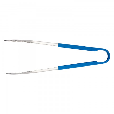 Utility Tongs, 12"L, one-piece, scalloped, heat resistant up to 500°F, dishwasher safe, stainless steel, blue silicone coated handle, NSF