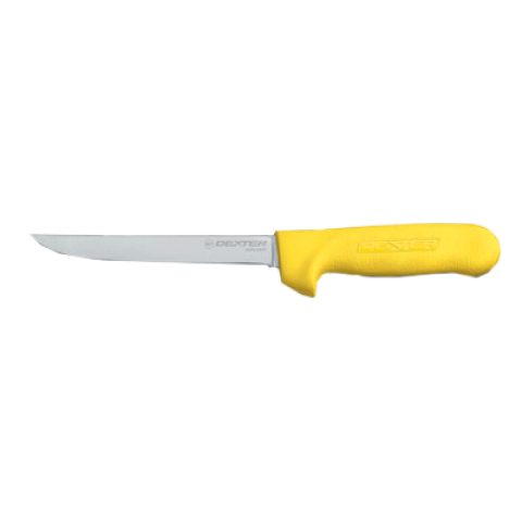 Sani-Safe® (1563Y) Boning Knife, 6", narrow, stain-free, high-carbon steel, textured, polypropylene yellow handle, Perfect Cutlery Packaging, NSF Certified, Made in USA
