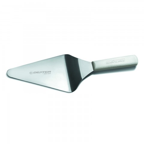 Sani-Safe® (16503) Pizza Server, 6" x 5", stainless steel, offset blade, textured, polypropylene white handle, NSF Certified, Made in USA