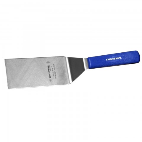 Sani-Safe® Cool Blue™ (19683H) Hamburger Turner, 6" x 3", solid, beveled edges, heat resistant handle up to 500°, stainless steel blade, textured, polypropylene blue handle, Perfect Cutlery Packaging, NSF Certified, Made in USA