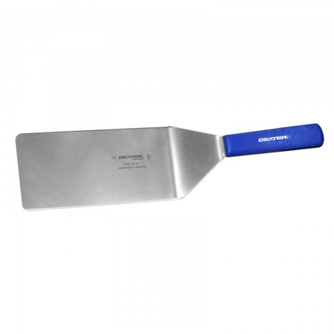 Sani-Safe® Cool Blue™ (19733H) Steak Turner, 8" x 4", heat resistant handle up to 500°, stainless steel blade, beveled edges, textured, polypropylene blue handle, Perfect Cutlery Packaging, NSF Certified, Made in USA