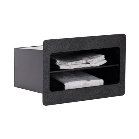 Bag Organizer, built-in, 7-1/2"H x 10-5/8"W x 11-1/2"D, requires a Requires a 5-1/4"H x 9-9/16"W cut-out, accommodates variety of bags up to 9"W, black polystyrene