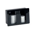 Lid Dispenser, built-in, 2 section, 7-1/4"H x 11"W x 5-3/8"D, 6-1/4" x 10" cut-out, acrylic, black