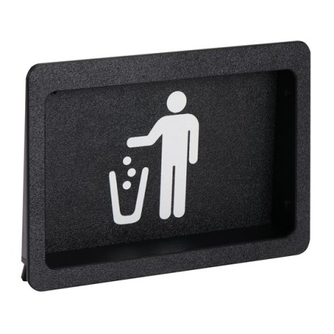 Trash Door, built-in, 7-1/2"H x 10-5/8"W x 2-1/4"D, requires a 6-9/16"H x 9-13/16"W cut-out, trash symbol faceplate, small, black polystyrene