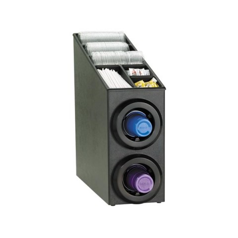 Cup Dispenser Cabinet, 22-1/4" H x 8-1/2" W x 24" D, adjustable, (2) STL-2F, holds 8 to 44 oz. cups, rim dia. 3-1/8" - 4-1/2", ABS top organizer for lids, straws, & condiments, black polystyrene, NSF