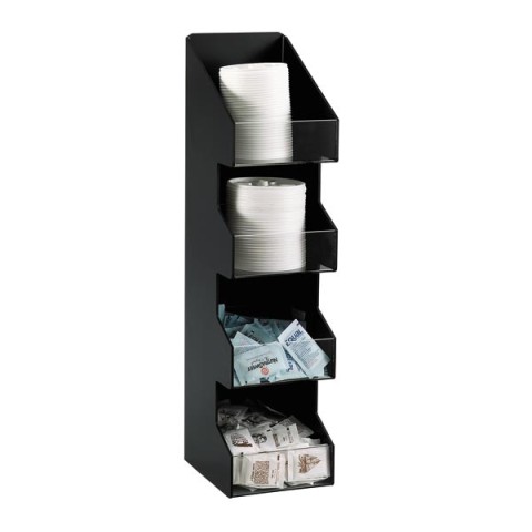 Lid/Condiment Organizer, countertop, 4 section, 21"H x 5-1/4"W X 6-5/8"D, polystyrene, black
