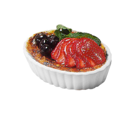 Creme Brulee Dish, 5 oz., 5-1/4"L x 4"W x 1-1/8"H, oval, fully vitrified, oven & microwave safe, lead-free, ceramic (2 dozen per case)