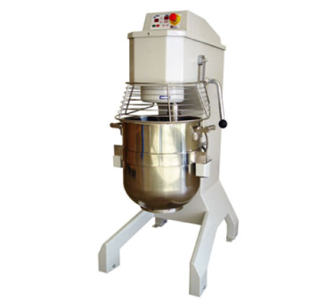 Planetary Mixer, floor model, 60 quart capacity, 20 speeds, includes stainless steel bowl, safety guard, dough hook, whip and flat beater, cast iron frame with enamel plated steel finish, 4 HP