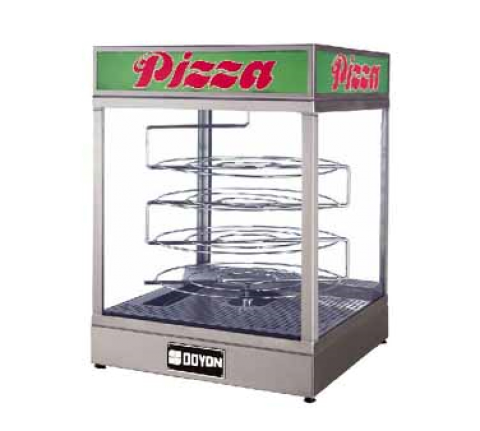 Food Warmer/Display Case, countertop, with revolving four tier interior rack, capacity (4) 19-3/4" dia. pizzas, inside water pan for humidity, adjustable heat control, tempered glass front, sides & door, stainless steel interior & exterior, 120v/60/1-ph, 11.5 amps