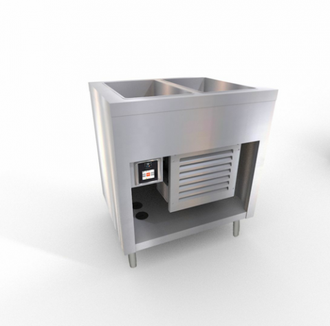 AeroServ™ Flush Mount Cold Pan Unit, 32"W x 24-1/2"D x 36"H, 20 ga stainless steel top, (2) pan size, self-contained refrigeration, 1" brass drain & plug, stainless steel body & undershelf, 6"H stainless steel legs & adjustable feet, R448a, 120v/60/1-ph, 1/5 hp, 3.7 amps, 6' cord with NEMA 5-15, cULus, UL EPH Classified