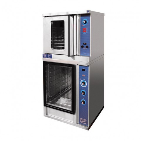 Convection Oven, electric, single-deck with proofer base, 30"W x 30"D, oven: half-size, (1) left-hinge stainless steel door with window, (5) racks & (9) rack positions, porcelain interior, solid state digital time & temperature controls (200°-500°F), 12-hour countdown timer, cook & hold feature, 2-speed fan, pulse fan capability; proofer: spring-loaded left-hinge glass door, (16) pans capacity, solid state temperature control, electric dial timer, water reservoir, stainless steel construction, casters, NSF, cETLus, ETL-Sanitation