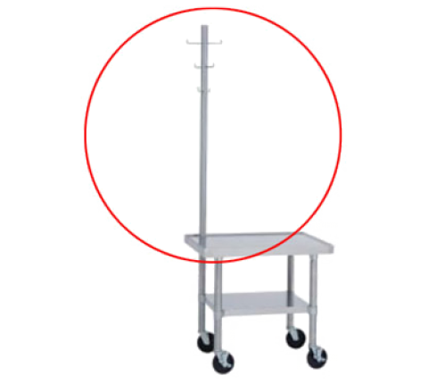 Utensil Rack, 50" high, constructed of 1-5/8" stainless steel tubing, with (6) 3" stainless steel rods welded to post, for Mixer stands (must be ordered with stand), when ordered, stand shall have stainless steel legs & feet as standard, NSF