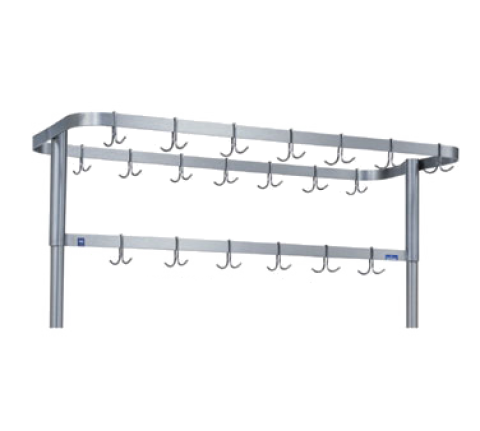 Pot Rack, table mount, 64"W x 24"D x 14"H, triple-bar design, constructed of 1/4" x 1-1/2" galvanized steel, 1-5/8" tubular supports mounted through undershelf to floor, includes double-prong pot hooks, NSF (price when purchased separately for existing table)
