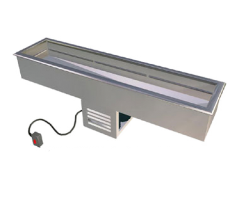 Slimline Drop-In Cold Food Pan, refrigerated, 70-3/4"W x 17-3/8"D x 25"H, accommodates (3) 4" deep 12" x 20" pans, 300 series stainless steel top with overhang & locking tabs, 8" deep 300 series stainless steel interior liner, steel exterior housing, remote mounted on/off switch with stainless steel face plate (2-3/16"W x 4-1/8"H cutout requried), air-cooled condensing unit, (2) adapter bars included, 1" brass drain & plug, R134a, 6' cord & NEMA 5-15P, cULus, UL EPH Classified (69-3/4"W x 16-3/4"D cutout required for unit)