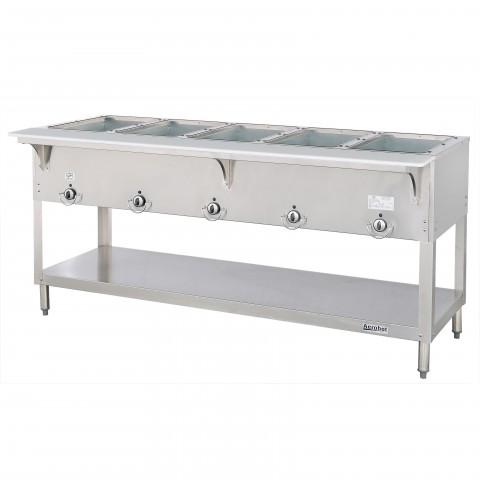 Aerohot™ Hot Food Station, electric, 72-3/8"W x 22-7/16"D x 34"H, (5) 12" x 20" hot food wells with exposed elements, infinite controls, stainless steel top with 1/2" thick x 7" wide poly carving board, stainless steel open base with undershelf, legs & feet, 6' cord & plug, cULus, UL EPH Classified