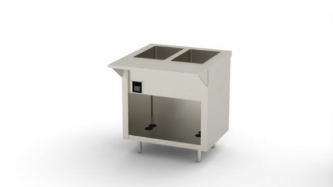 Thurmaduke™ Ganged Waterless Well Unit, electric, 32"W x 25-1/2"D x 36"H, 16ga stainless steel top, (2) stainless steel sealed wells, touch screen control, 20ga stainless steel body & undershelf, 6"H stainless steel legs with adjustable feet, cULus, UL EPH CLASSIFIED (Flyer)
