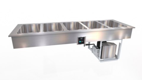 Flush Mount Cold Pan Unit, drop-in unit, 74-13/16"W x 26"D x 24"H, (5) pan size, touchscreen control, 12" x 20" food pan, drain for each well manifolded to one location, 6' cord & plug, 120v/60/1-ph, R448a, NEMA 5-15, 4.9 amps, NSF, CULus, UL EPH Classified