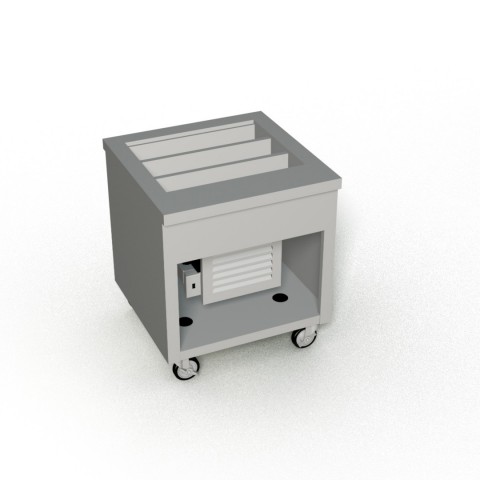 Thurmaduke™ Cold Pan Unit, mobile, 32"W x 32"D x 36"H, tri-channel, accommodates (6) 1/3 pans, 8" deep, 25-5/8"W x 21-5/16"D stainless steel liner, paint grip steel body & undershelf, 16ga stainless steel top, 5" swivel casters with brakes, self-contained refrigeration, R448a, 120v/60/1-ph, 1/4 HP, 5.0 amps, 6' cord, NEMA 5-15P, cULus, UL EPH Classified