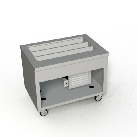 Thurmaduke™ Cold Pan Unit, mobile, 46"W x 32"D x 36"H, tri-channel, accommodates (9) 1/3 pans, 8" deep, 38-3/8"W x 21-5/16"D stainless steel liner, paint grip steel body & undershelf, 16ga stainless steel top, 5" swivel casters with brakes, self-contained refrigeration, R448a, 120v/60/1-ph, 1/3 HP, 4.4 amps, 6' cord, NEMA 5-15P, cULus, UL EPH Classified