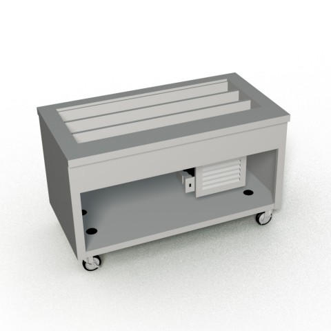 Thurmaduke™ Cold Pan Unit, mobile, 60"W x 32"D x 36"H, tri-channel, accommodates (12) 1/3 pans, 8" deep, 51-1/8"W x 21-5/16"D stainless steel liner, paint grip steel body & undershelf, 16ga stainless steel top, 5" swivel casters with brakes, self-contained refrigeration, R448a, 120v/60/1-ph, 1/3 HP, 4.4 amps, 6' cord, NEMA 5-15P, cULus, UL EPH Classified