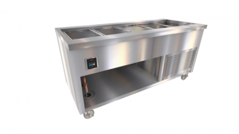 Thurmaduke™ Cold Food Unit, mobile, 74”W X 32”D X 36”H, 16ga stainless steel top, NSF7 cold pan, basic mechanical control, 1” drain line & valve, paint grip steel body & undershelf. Paint grip steel louvered grills.