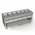 Thurmaduke Hot Food Unit, mobile, 88”W X 32”D X 36”H, 16ga stainless steel top, (6) sealed hot food wells, 1” drain line & valve, stainless steel body & undershelf, 5” swivel casters & brakes, 6 ft cord and plug, cULus, EPH Classified