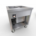 Thurmaduke™ Flush Mount Cold Pan Unit, mobile, 32"W x 32"D x 36"H, 16ga stainless steel top, (2) pan size, digital control, self-contained refrigeration, drain for each well manifolded to one location, hinged stainless steel louvered grill, stainless steel body & undershelf, 5" dia. swivel casters with brakes, 10' cord & plug, 120v/60/1-ph, R290, NEMA 5-15, 3.9 amps, CULus, UL EPH Classified