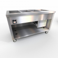 Thurmaduke™ Flush Mount Cold Pan Unit, mobile, 60"W x 32"D x 36"H, 16ga stainless steel top, (4) pan size, digital control, self-contained refrigeration, drain for each well manifolded to one location, paint grip steel body & undershelf, 5" dia. swivel casters with brakes, 6' cord & plug, 120v/60/1-ph, R448a, NEMA 5-15, 4.9 amps, NSF, CULus, UL EPH Classified