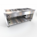 Thurmaduke™ Flush Mount Cold Pan Unit, mobile, 74"W x 32"D x 36"H, 16ga stainless steel top, (5) pan size, digital control, self-contained refrigeration, drain for each well manifolded to one location, stainless steel body & undershelf, 5" dia. swivel casters with brakes, 6' cord & plug, 120v/60/1-ph, R448a, NEMA 5-15, 4.9 amps, NSF, CULus, UL EPH Classified