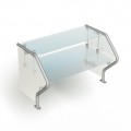 Contemporary Food Shield, 59-1/2"W x 18-1/2"D x 20-1/8"H, self-service, dual shelves, sloped fixed guard (one-side) with fixed end closures, 3/8" glass shelves & guard with 1/4" glass ends (tempered with polished rounded edges), Ø 1" tube posts, stainless steel finish posts