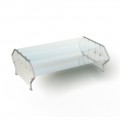 Contemporary Food Shield, 31-1/2"W x 40"D x 20-1/8"H, self-service, dual shelves, sloped fixed guard (both sides) with fixed end closures, 3/8" glass shelves & guard with 1/4" glass ends (tempered with polished rounded edges), Ø 1" tube posts, stainless steel finish posts