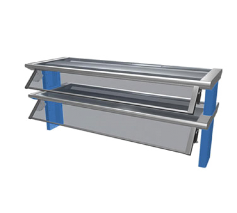 Thurmaduke™ Designer Sneeze Guard, 31-3/4"W x 16-1/2"D x 24"H, (1) sided self-service style, 2-tier with glass shelves, adjustable front glass, painted end panels & 1/4" acrylic end guards (NOTE: upper deck for wrapped food only), cULus, UL EPH Classified