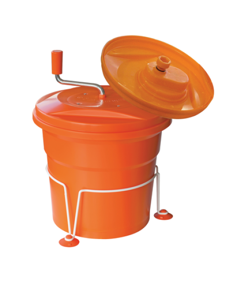 SD92SC Salad Spinner, manual, 5 gallon (20 liter) capacity, 17" dia. x 21"H, dries up to 8 heads of lettuce, sealed cover, CE, ETL-Sanitation, with stabilizing base (SSB1)