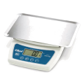 Scale, digital, portion, large LCD display, 160.0 oz. x 0.1 oz./160 oz. x 1/8 oz./5000 g. x 1 g., 6" x 6-3/4" stainless steel platform, plastic body, low battery indicator, automatic shut-off, field recalibratable, power jack plug, also operates on 9 v battery (not included), NSF, CUL, UL, CE
