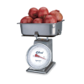 Scale, Receiving, Dial Type, with cradle and 4" half pan, top loading counter model, fixed dial, sloped face, 50 lb x 2 oz graduation, stainless steel construction, for produce, NSF certified