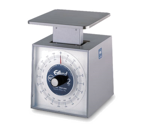 Scale, Metric Portion, Dial Type, dishwasher safe (when front window removed), top loading counter model, rotating dial, 2000 gm x 10 gm graduation, stainless steel construction, NSF certified, made in USA
