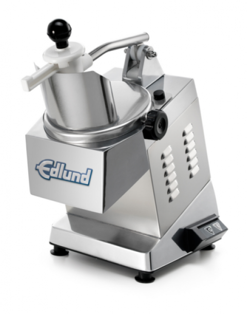 Edlund VariCut Food Processor, optional innovative 7-in-1 blade and over 30 specialized blades for effortless grating, shredding, slicing, dicing, and julienne cuts. Direct eject, 16"L x 20"W x 30"H, 3/4HP, 115v, 500 LBS/HR capacity, 300 RPM disc speed