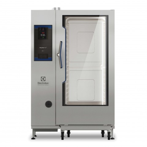 (LV219655) SkyLine ProS 202 Combi Oven, electric, boilerless, (20) 18" x 26" sheet pan capacity, touch screen interface, (2) cooking modes with special functions, Optiflow (7) speed fan, SkyClean automatic cleaning system, USB port, (6) point multi-sensor probe, triple-glass door, LED lights, stainless steel interior & exterior, 64.5kW, 208v/60/3-ph, 180.1 amps, cETLus, ETL-Sanitation, IPX5, includes (10) each grids (922076), (1) trolley (922757) & integrated spray hose