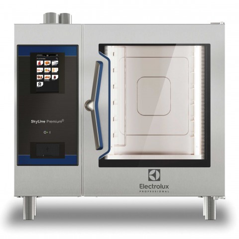 (LV219740) SkyLine PremiumS 61 Combi Oven, electric, boiler, (6) 12" x 20" hotel pan capacity, touch screen interface, (3) cooking modes with special functions, Optiflow (7) speed fan, SkyClean automatic cleaning system, USB port, (6) point multi-sensor probe, triple-glass door, LED lights, stainless steel interior & exterior, 11.1kW, 480v/60/3-ph, 13.8 amps, cETLus, ETL-Sanitation, IPX5, includes (3) each grids (922062) & integrated spray hose