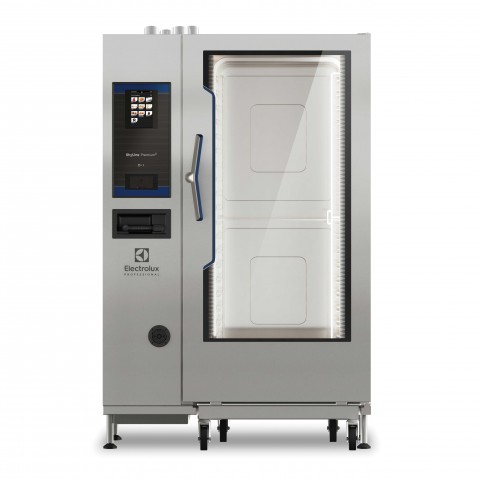 (LV219755) SkyLine PremiumS 202 Combi Oven, electric, boiler, (20) 18" x 26" sheet pan capacity, touch screen interface, (3) cooking modes with special functions, Optiflow (7) speed fan, SkyClean automatic cleaning system, USB port, (6) point multi-sensor probe, triple-glass door, LED lights, stainless steel interior & exterior, 64.5kW, 208v/60/3-ph, 180.1 amps, cETLus, ETL-Sanitation, IPX5, includes (10) each grids (922076), (1) each trolley 922757 & integrated spray hose