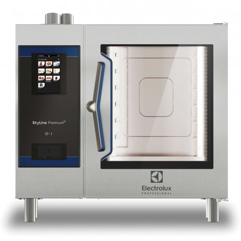 (LV219780) SkyLine PremiumS 61 Combi Oven, gas, boiler, (6) 12" x 20" hotel pan capacity, touch screen interface, (3) cooking modes with special functions, Optiflow (7) speed fan, SkyClean automatic cleaning system, USB port, (6) point multi-sensor probe, triple-glass door, LED lights, stainless steel interior & exterior, 76,429 BTU, 1.1kW, 120v/60/1-ph, 9.1 amps, cETLus, ETL-Sanitation, IPX5, ENERGY STAR®, includes (3) each grids (922062) & integrated spray hose